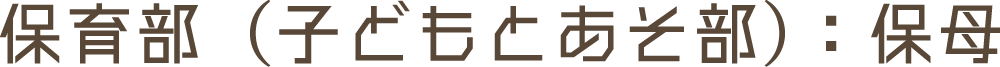 学園内にある託児所で、子どもたちの保育にあたります。とにかく子どもが好き!子どもと一緒に遊びたい!子どもの笑顔を見ると癒される!という方におススメです。